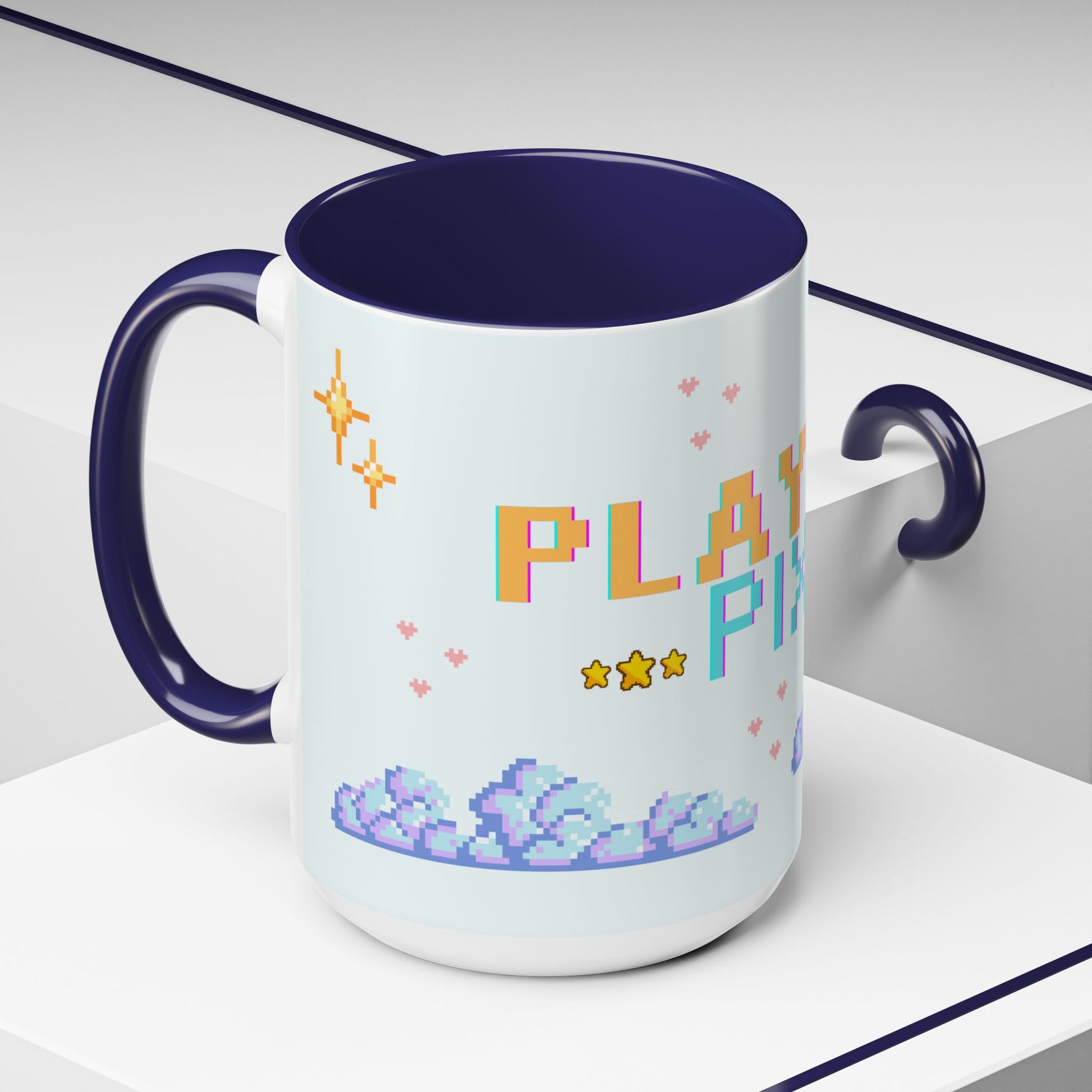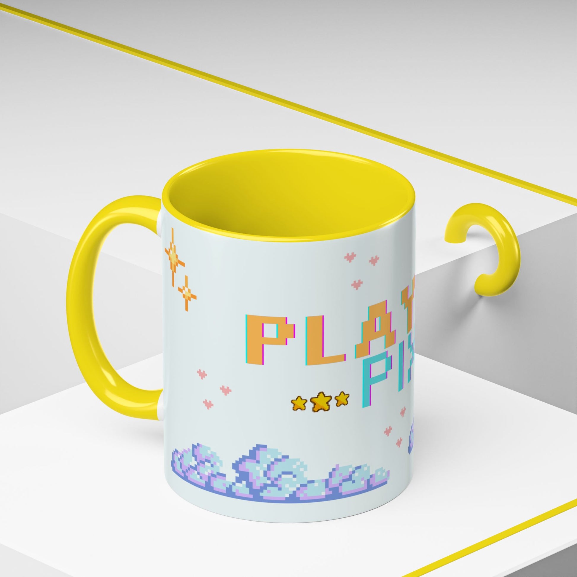 A fun and colorful mug featuring pixel art design, perfect for adding a playful touch to your morning coffee routine. This mug is relevant for pixel art enthusiasts and those who enjoy unique and eye-catching drinkware. Ideal for gifting on birthdays or as a fun surprise gift.